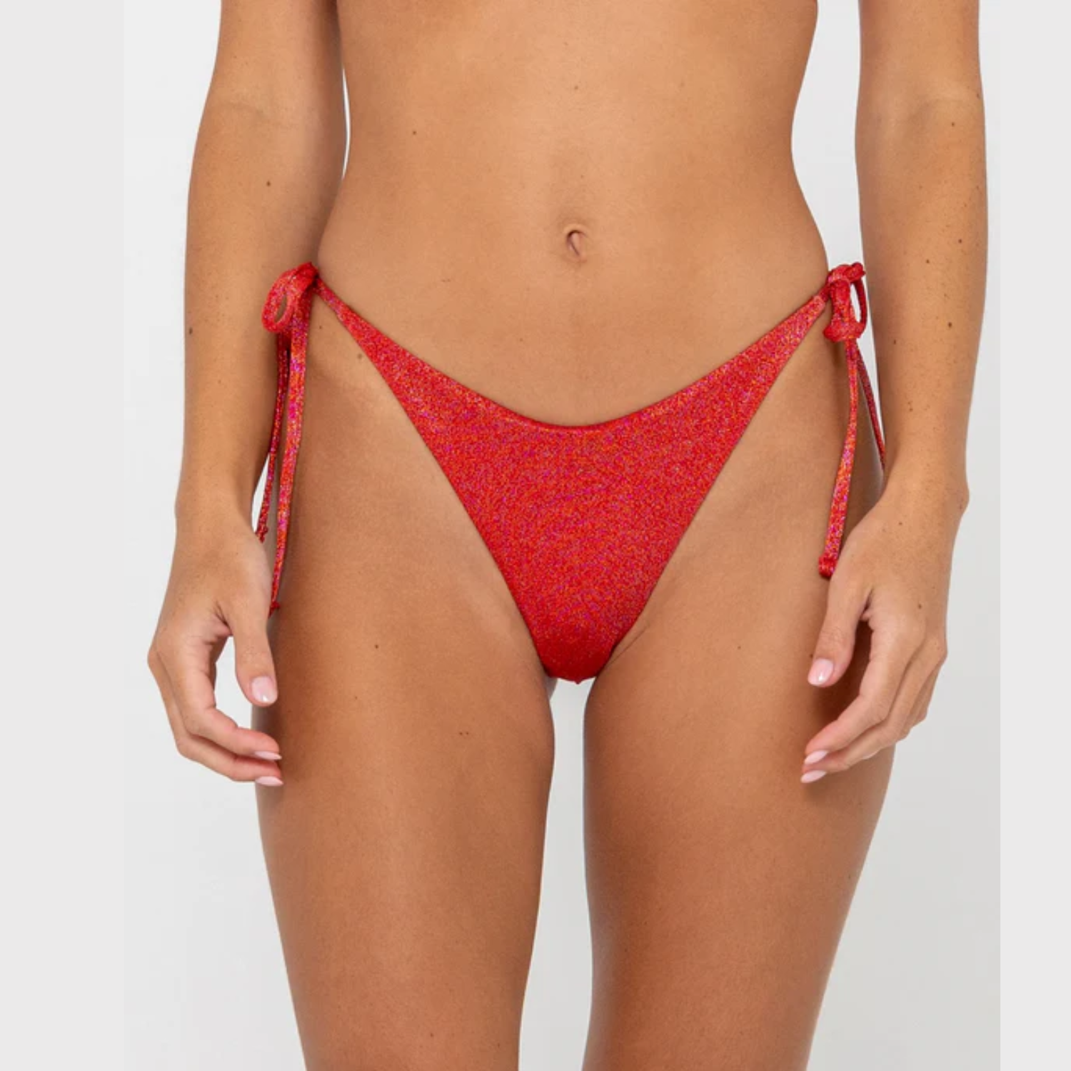 Rusty Shimmy Midi Tie Side Bikini Bottom Red SWL1758