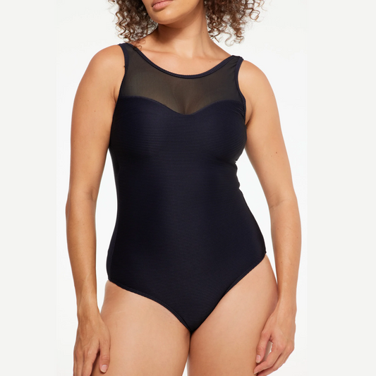 Togs Black Ribbed Textured Square One Piece TB06FI