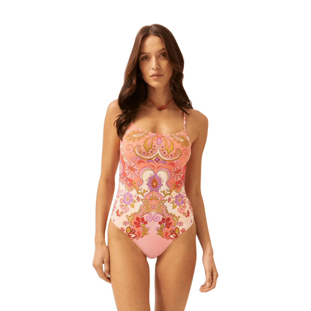 Introducing the Malibu One Piece, your ultimate go-to swimsuit all summer long. This ultra-flattering one piece is our newest Arnhem silhouette featuring a cross-back with functional tie, full coverage bottom and bold print placement.Â