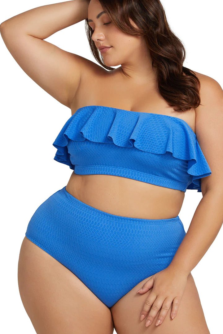 Artesands fits your curves. Our sleek line Renoir shape is the ultimate curve enhancer. Our Renoir shape is designed without panel lines for a smooth design finish. This curve fit and plus size swim pant is a high waist with 360 degree powermesh lining with good moderate bottom coverage.