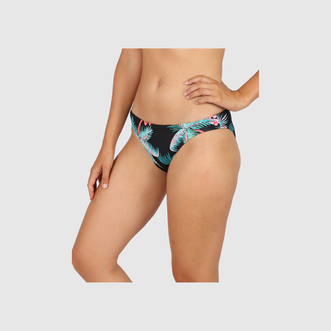 Baku's Amalfi Regular Bikini Bottom features a regular bottom. Transport yourself to a lavish paradise with our tropical floral- Amalfi. Embracing the essence of the natural beauty and picturesque landscapes of the Amalfi coast, this design boasts vibrant palm leaves intertwined with delicate florals, creating a captivating visual feast.