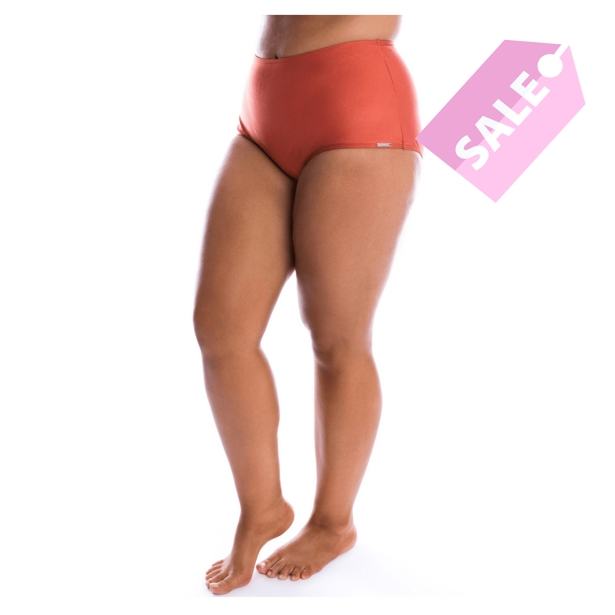 The Plain Rust High Waisted Pant is a plus size swimwear pant that’s retro-styled and ideal for any woman seeking fuller coverage and attractive highlight for her legs. This plus size swimwear pant is a mid-rise pant and offers a higher waistline and is available in our stunning plain rust colour.