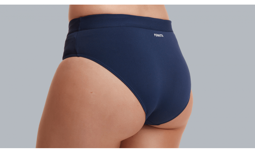 - Features wide waistband, drawcord and full rear coverage, this brief sits just below the belly button.