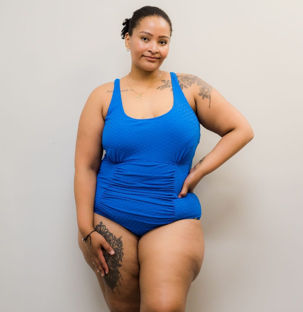Genevieve China Blue Aztec Jacquard F/G UW Tank One Piece CR1998FG