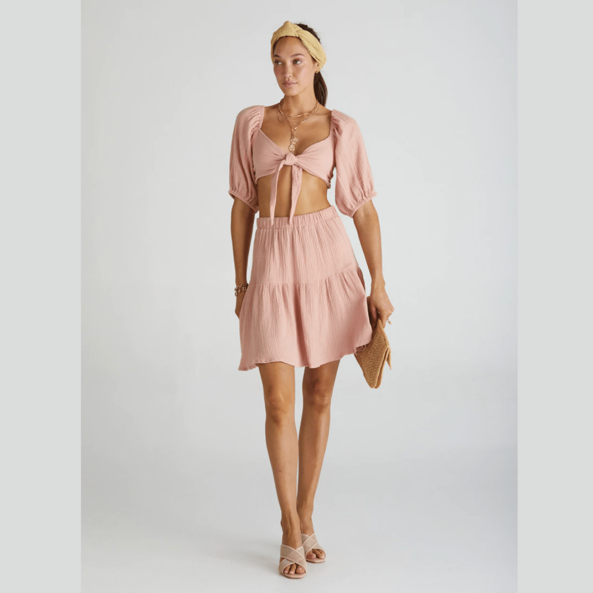 Our Tie Front Crop is your new fashion essential. Featuring a tie front and puff sleeves, pair with your favourite denim or mini skirt for the ultimate look.