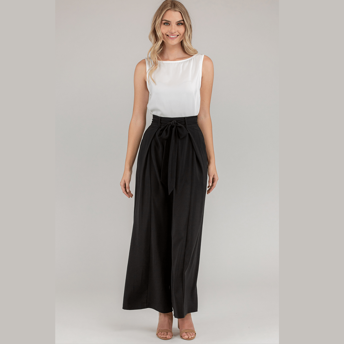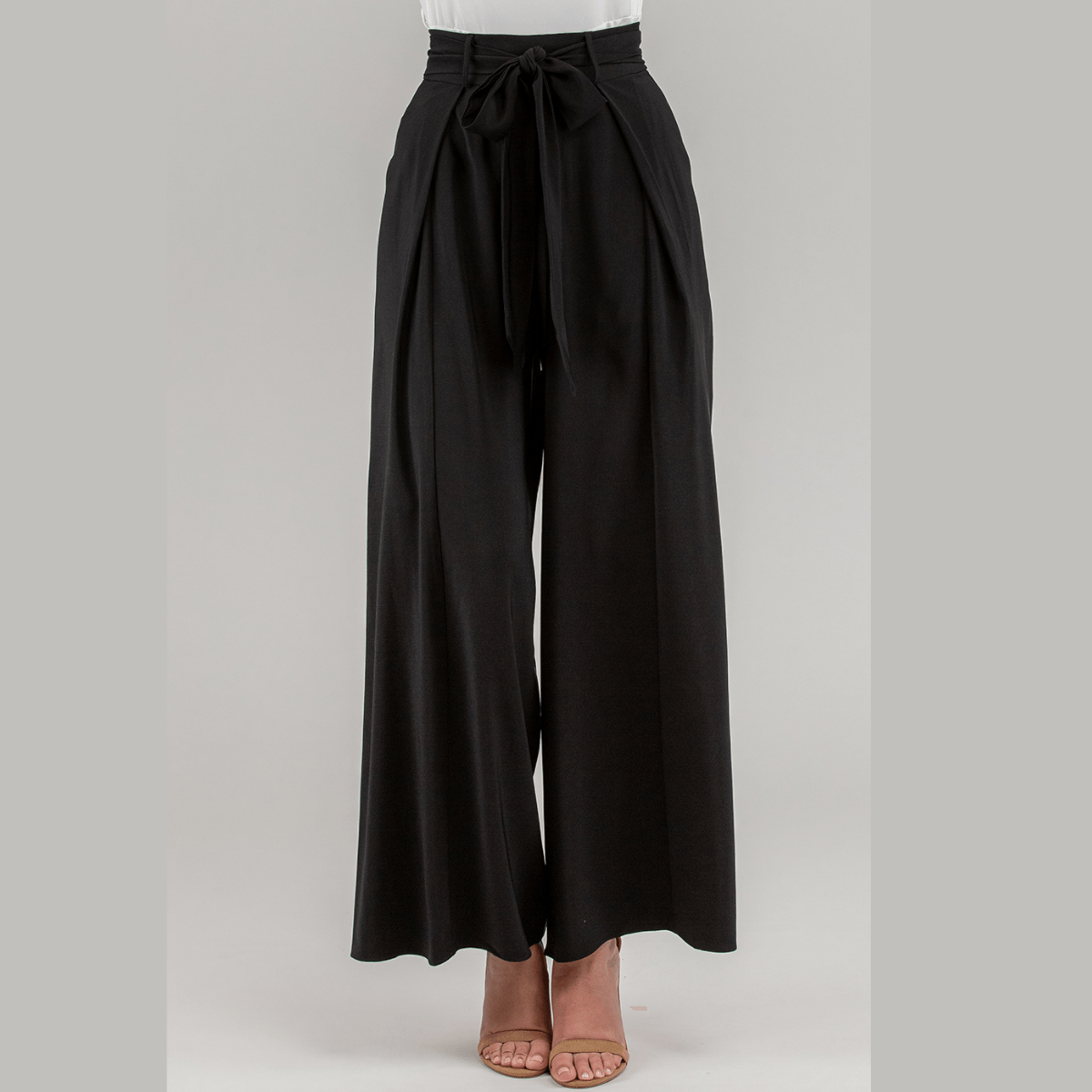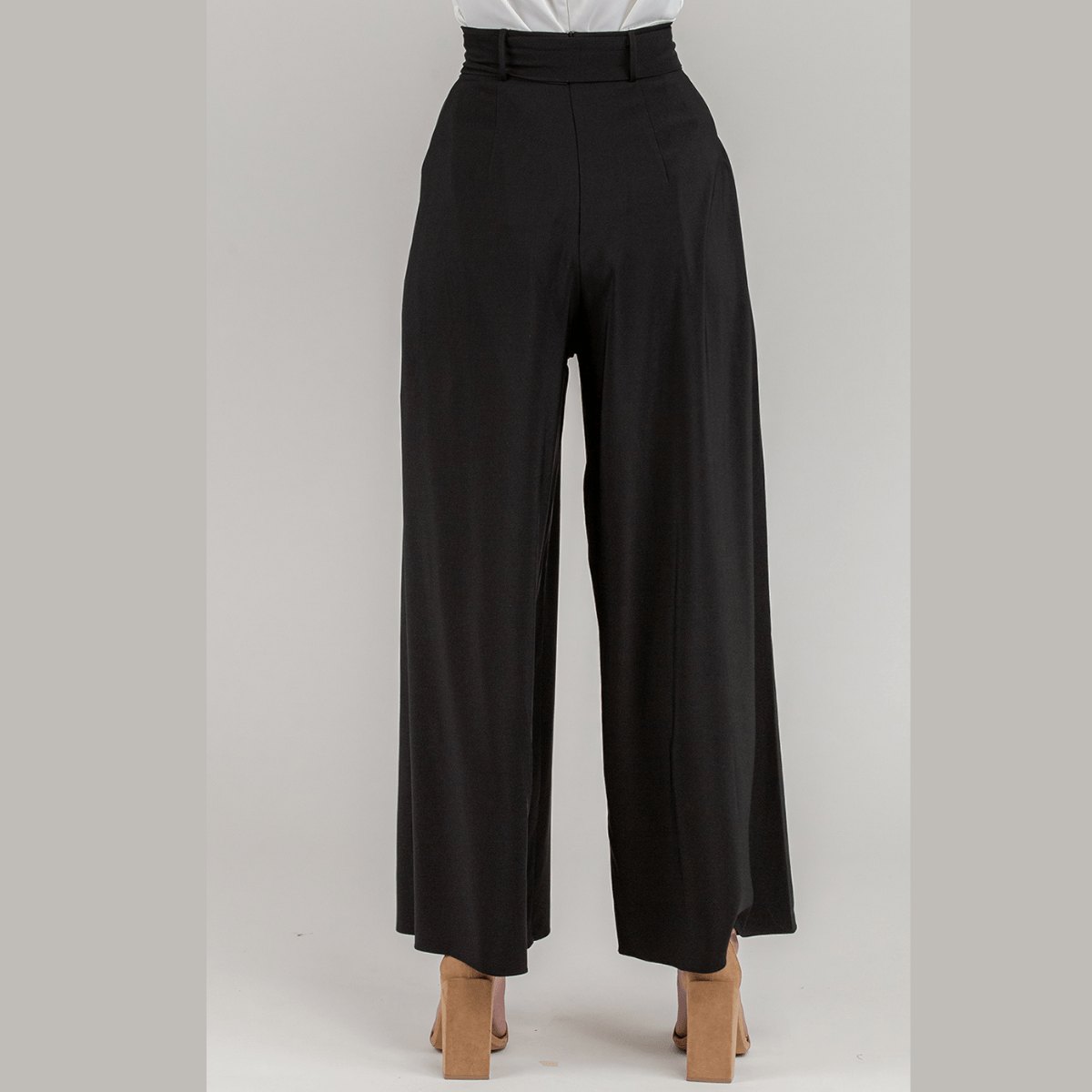 High Waist Pleated Black Wide Leg Pants SPA339A