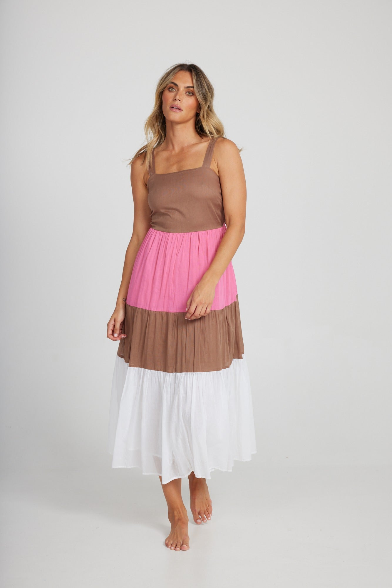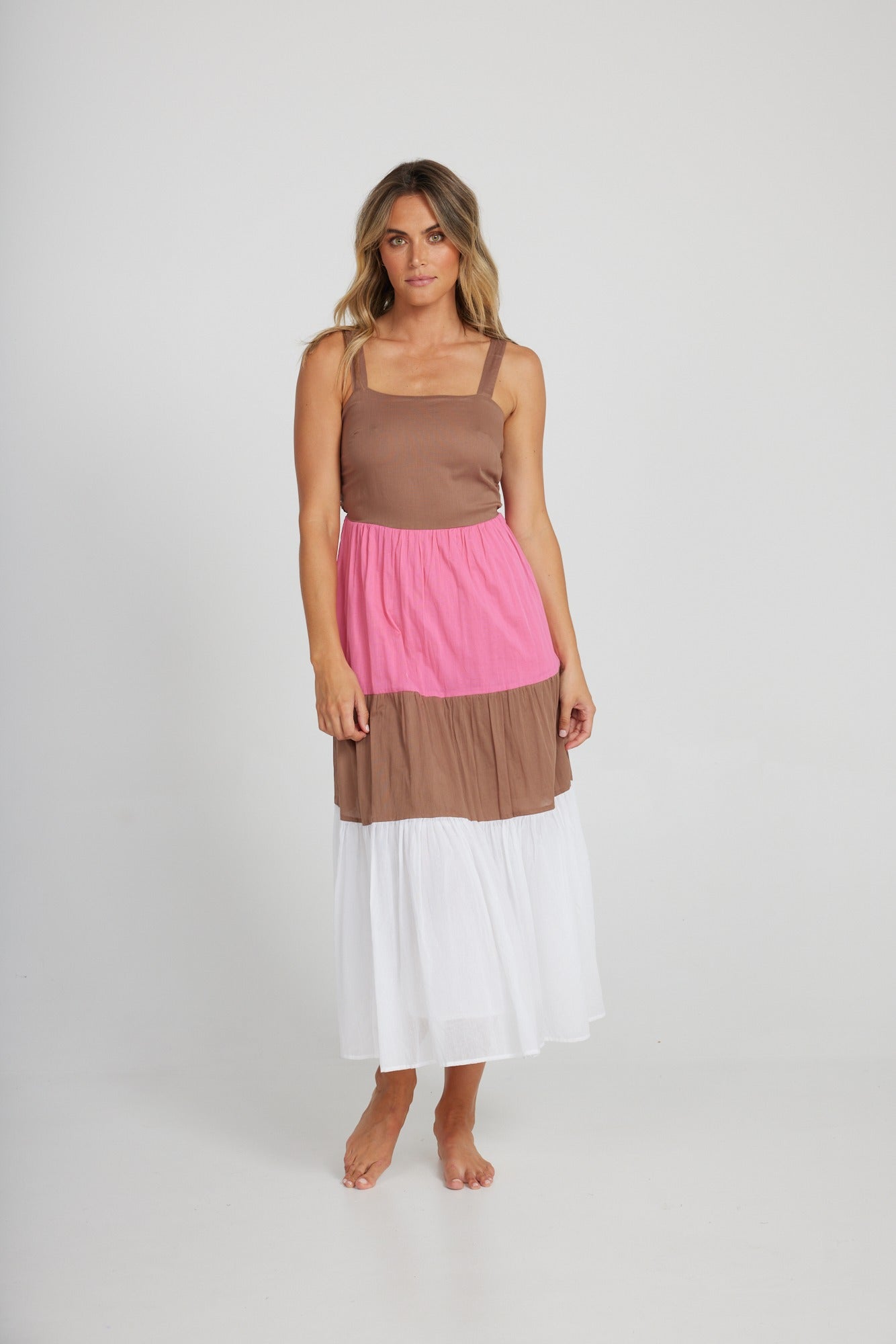 Holiday Carmello Dress Cocoa/ Hot Pink H1135-3