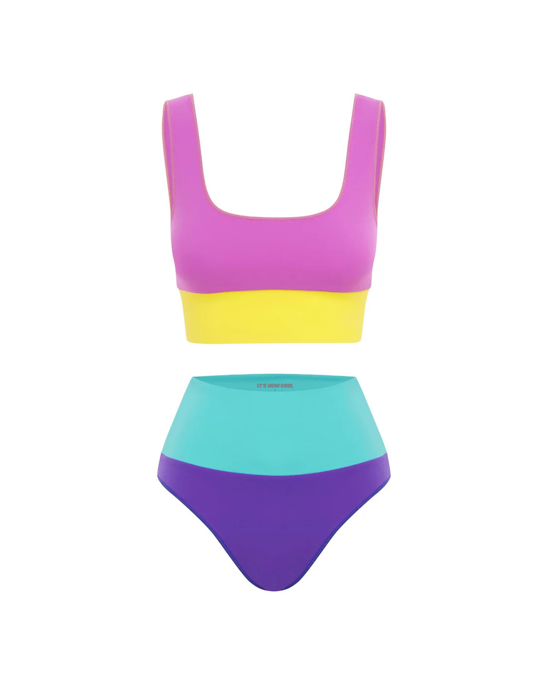 The Contour High Waist Pant in Passionfruit is crafted from compression lycra to smooth, sculpt, and shape your curves, featuring vibrant colour blocks that add an energetic flair to your summer!