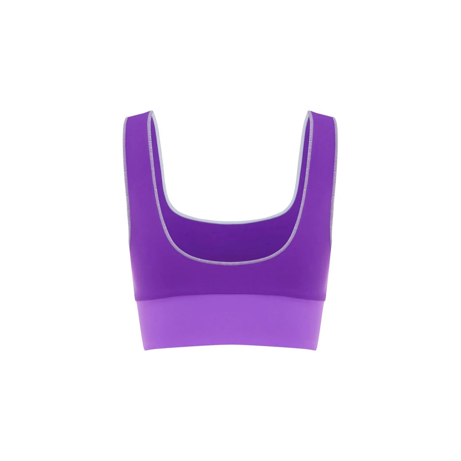 The Contour Crop in Periwinkle features vibrant purple colour-blocks and is crafted from compression lycra to smooth, sculpt, and shape your curves.