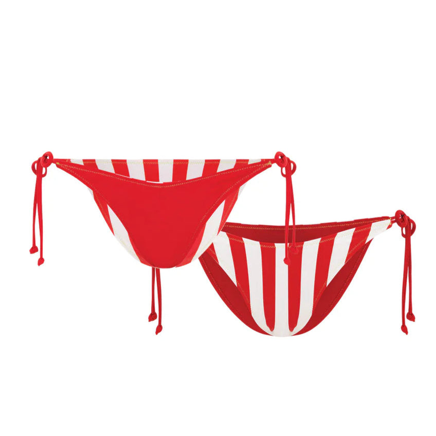 The Reverse Tie Pant in Red Twist is a bold addition to your summer wardrobe. This reversible pant boasts red and white stripes on one side and a striking red on the other.