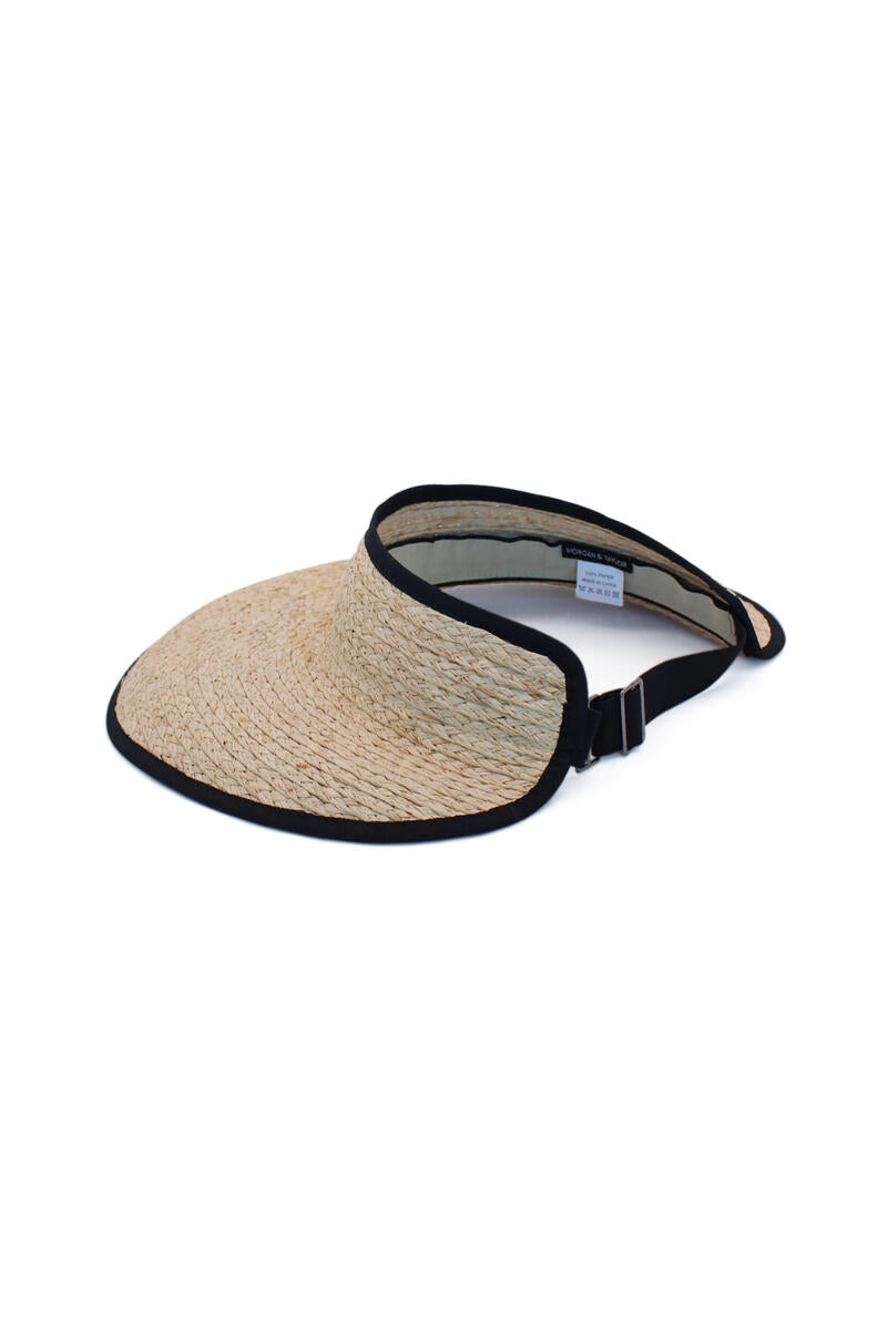 Elevate your Summer style with the Morgan & Taylor Tabitha Visor. Made from raffia straw with elegant black edges, this visor boasts a luxurious 8cm peak for a sophisticated look and great protection. The elastic back ensures a perfect fit, making it the ultimate accessory for your next beach getaway.