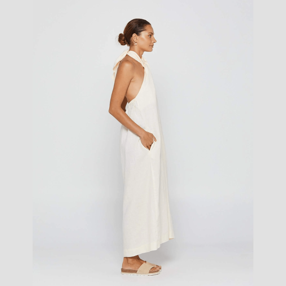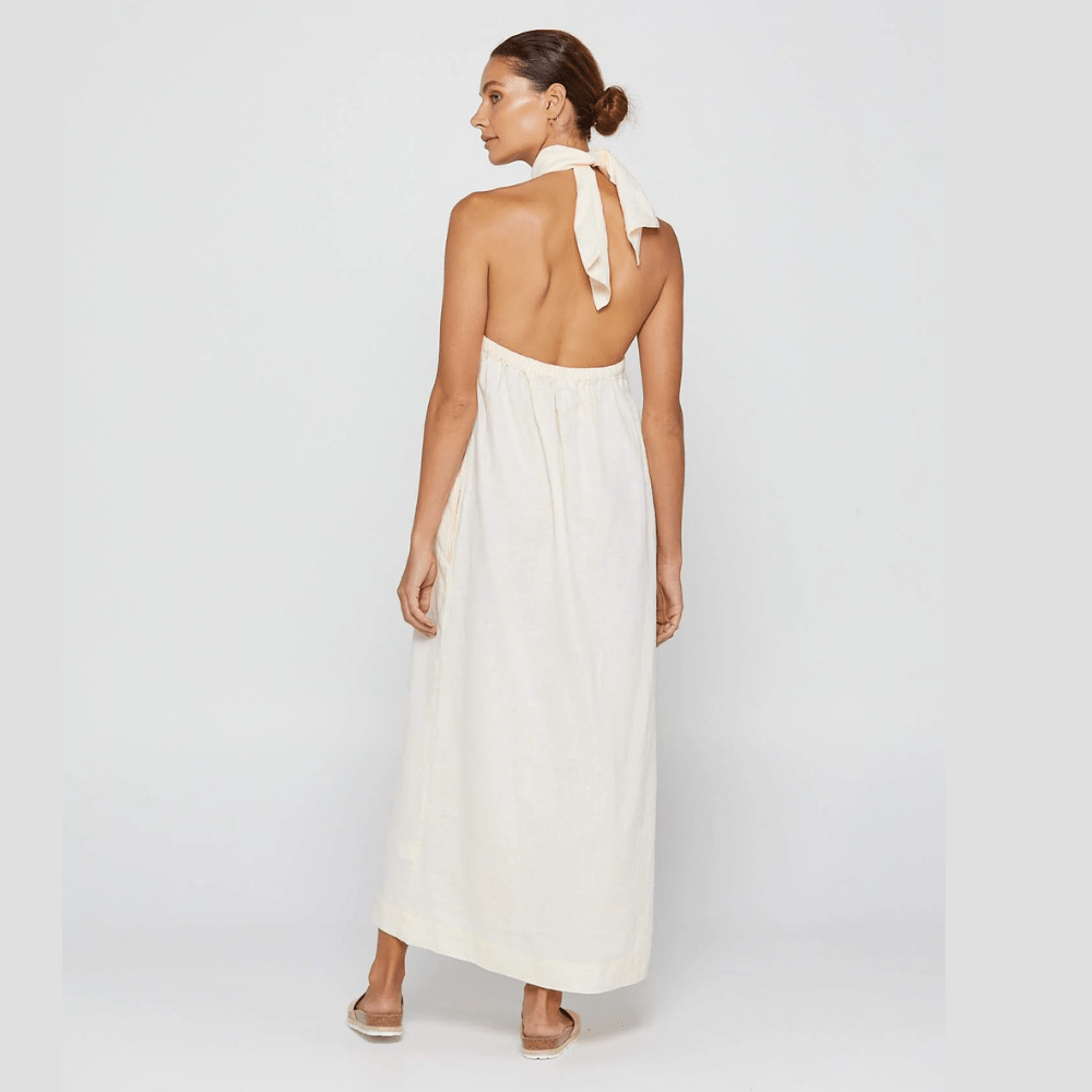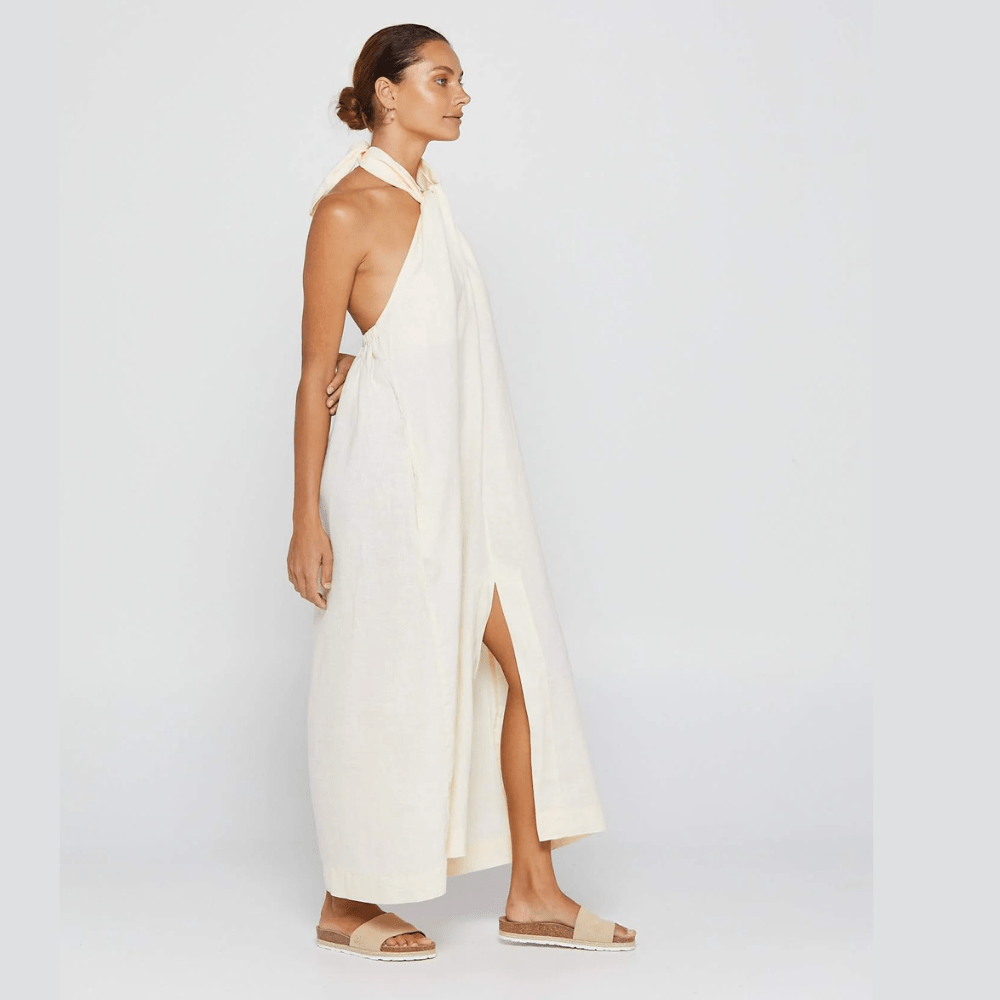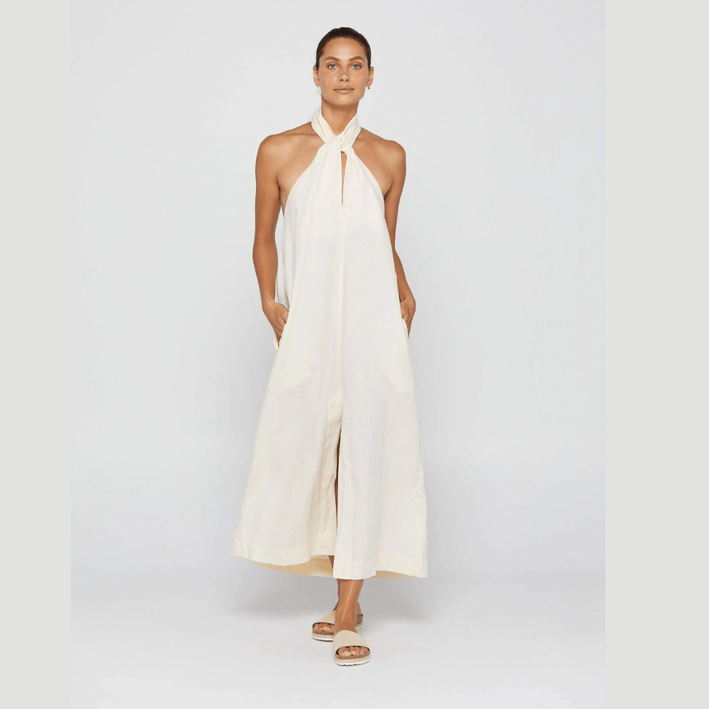 The By Ridley Zariyah Dress crafted from 100% Linen is the statement dress you need this season. Featuring a tie halter neck, keyhole front, centre front split and pockets, this dress has all the design details you have been looking for. Style me with your favourite summer accessories.
