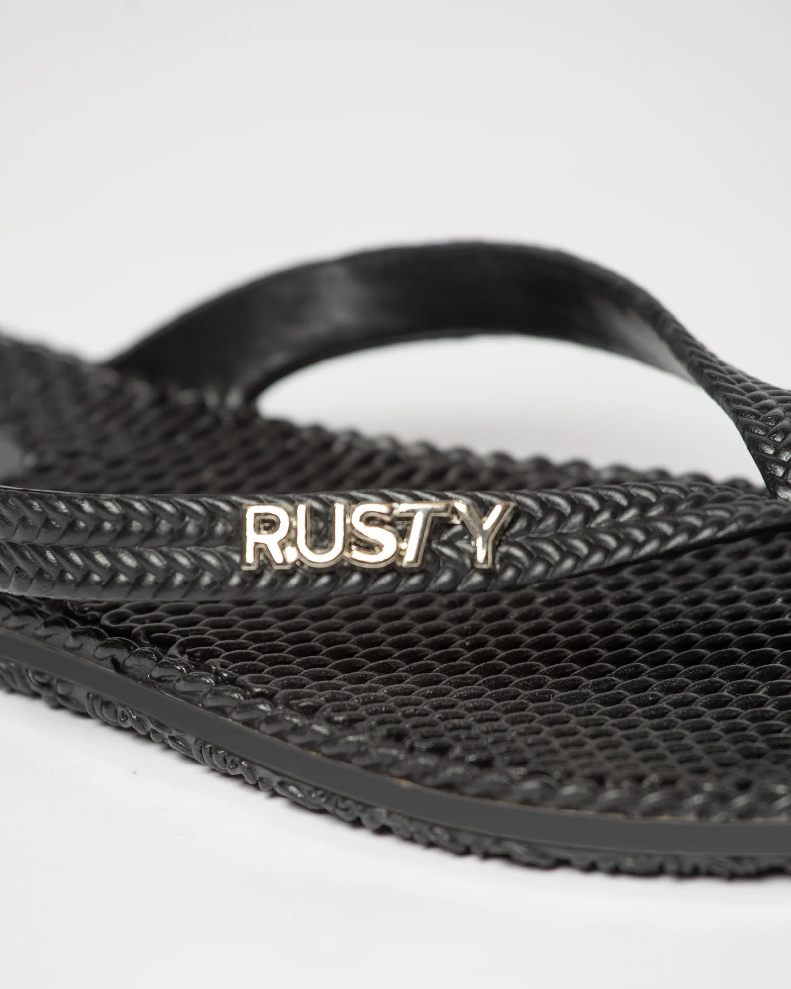 Moulded Rubber Thong With Textured Sole And Metal Badge. Material: Pvc / Rubber