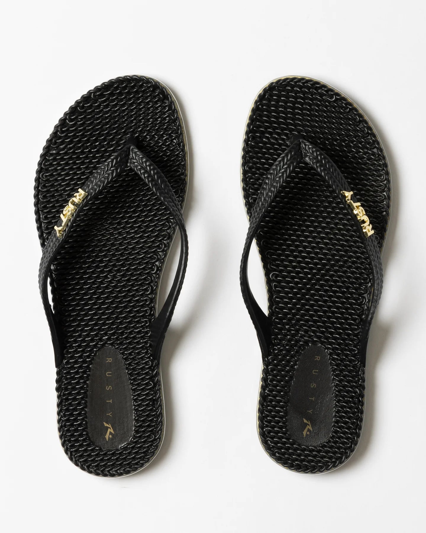 This moulded rubber thong sits on the foot with ease and has a textured sole for extra grip and comfort. Featuring a metal Rusty badge and piping detail that comes in an array of different colours to suit every mood.