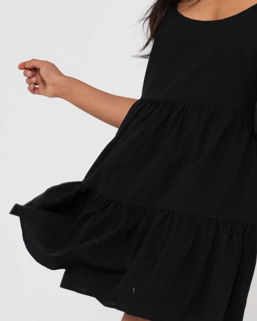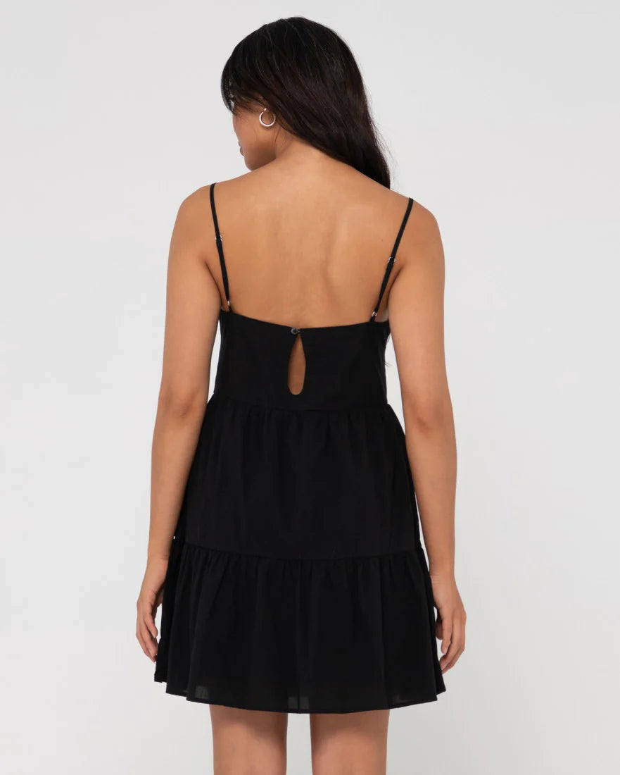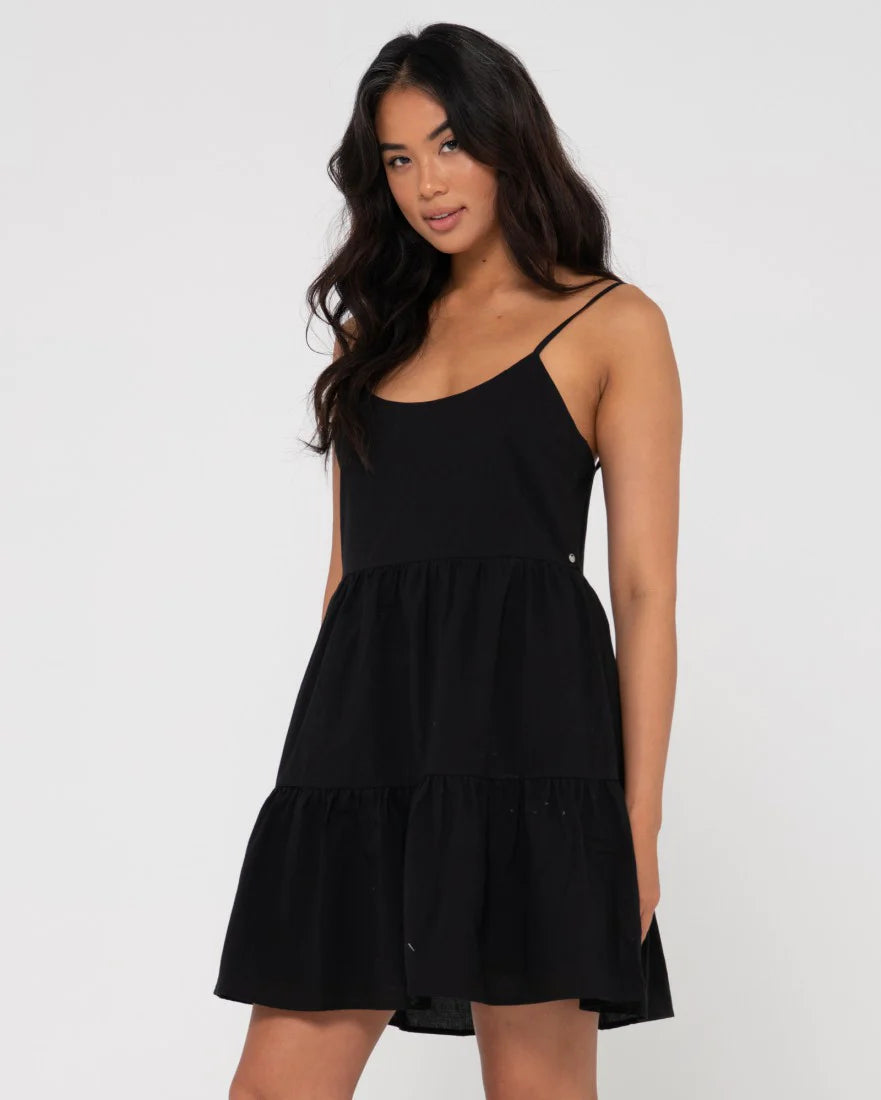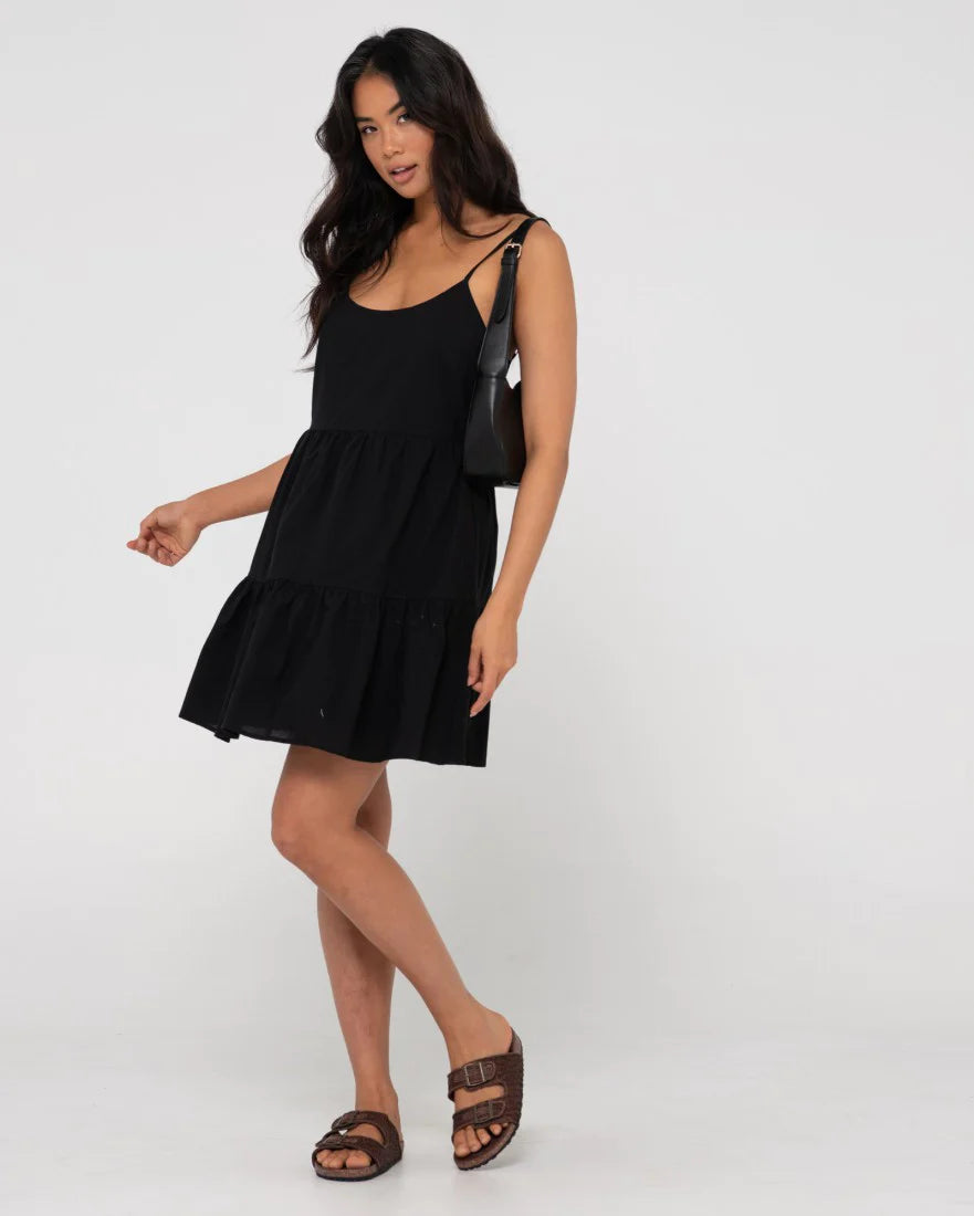 Round Neck Slip Dress With Tiered Panels Open Back And Adjustable Shoulder Straps. Material: 100% Cotton Woven