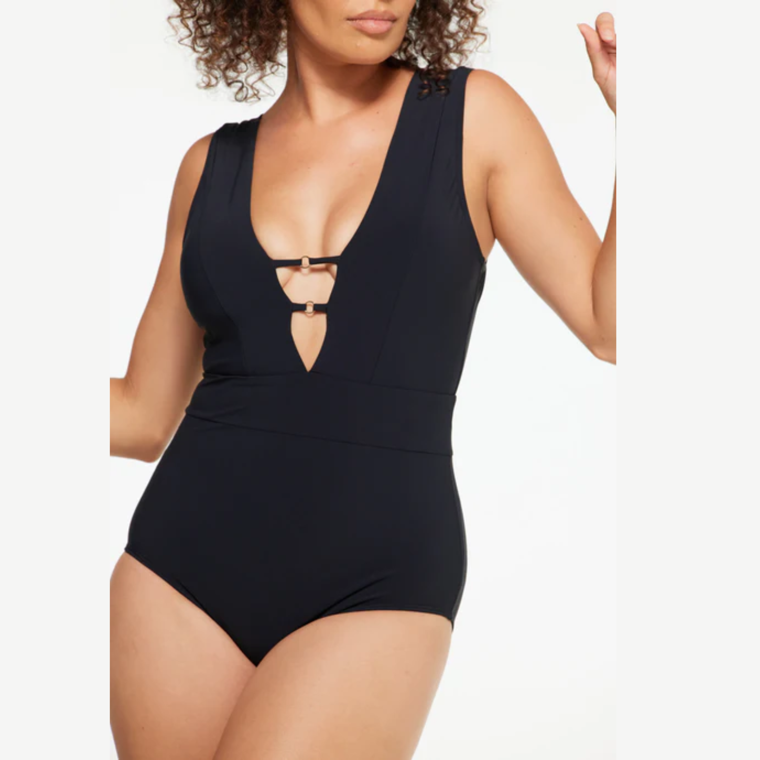 Make a bold statement with the plunging Ultra V Neck one-piece swimsuit. This striking design features a deep neckline that exudes elegance and confidence, while the tummy control panel provides a smooth and flattering silhouette. The wide-set straps ensure support. Perfect for turning heads at the beach or pool, this swimsuit combines style and practicality for a truly stunning effect.