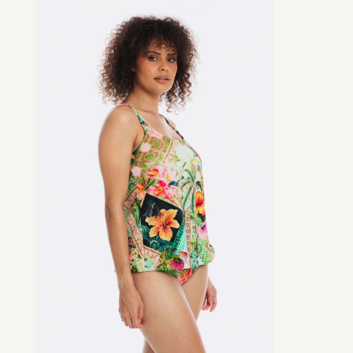 - Tankini with shelf bra suitable for A up to E Cup
