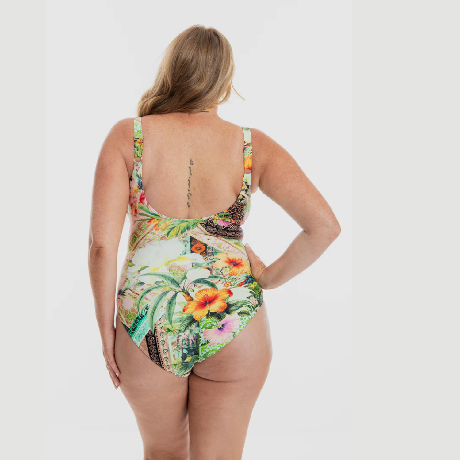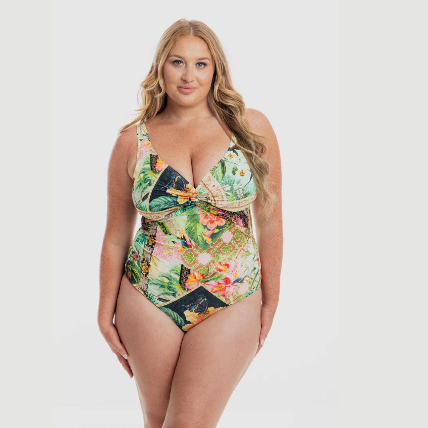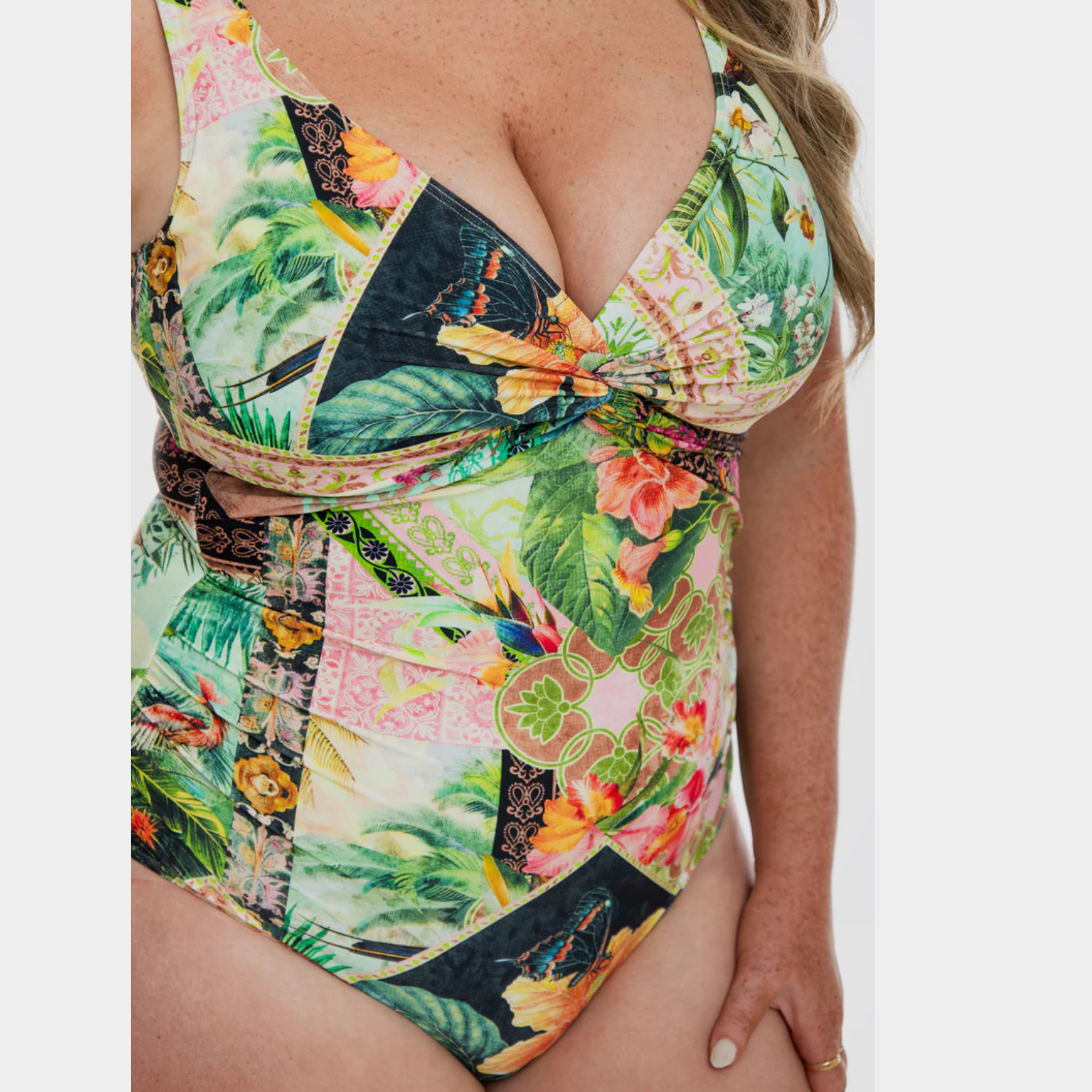 Discover the Togs V neck one piece swimsuit with a delightful twist, designed to provide a flattering fit. This swimsuit ensures you feel secure and supported, making it perfect for any water activity.